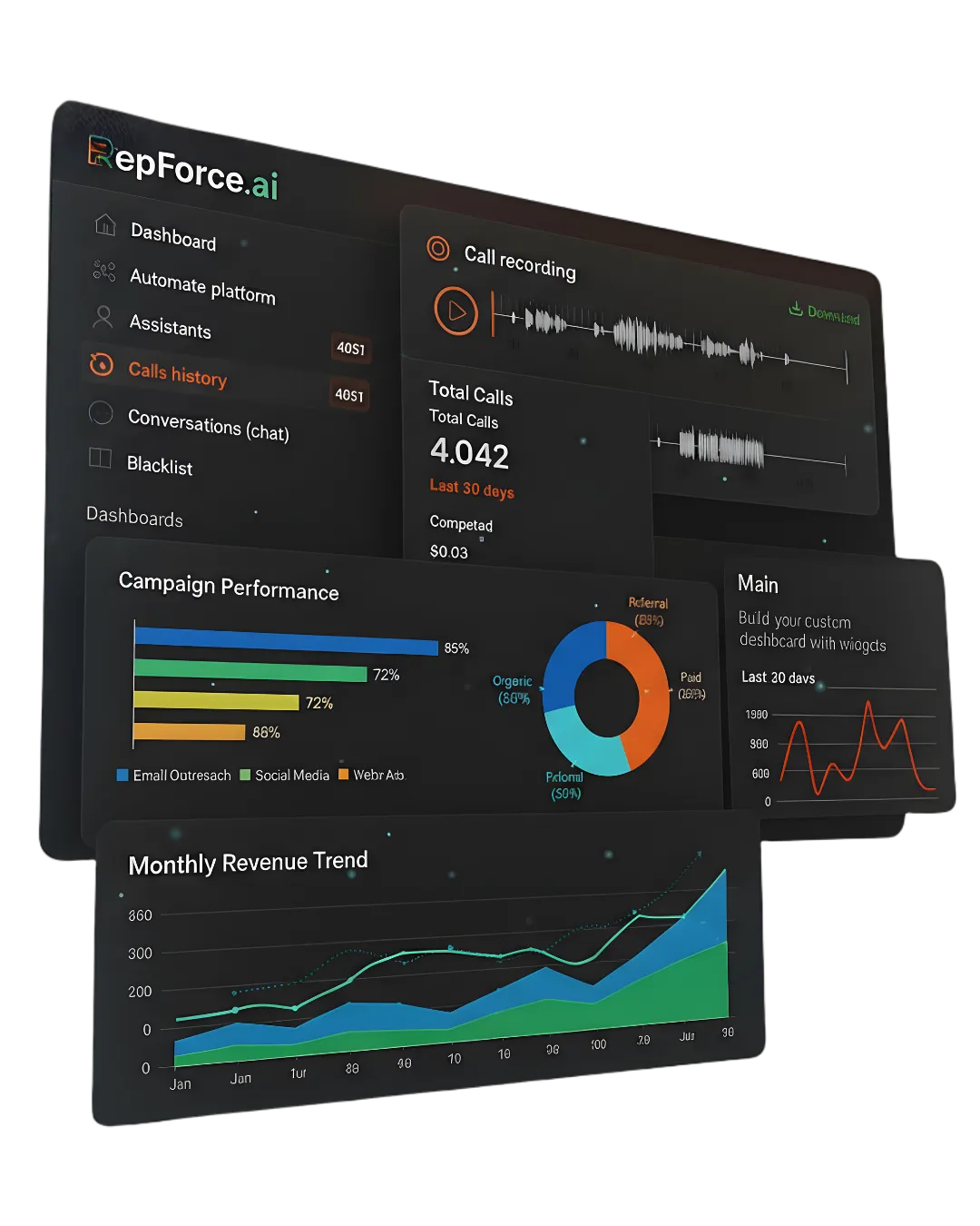 From first touch to final close, RepForce.ai provides AI reps that sound human, follow proven scripts, and scale revenue without the cost of hiring.